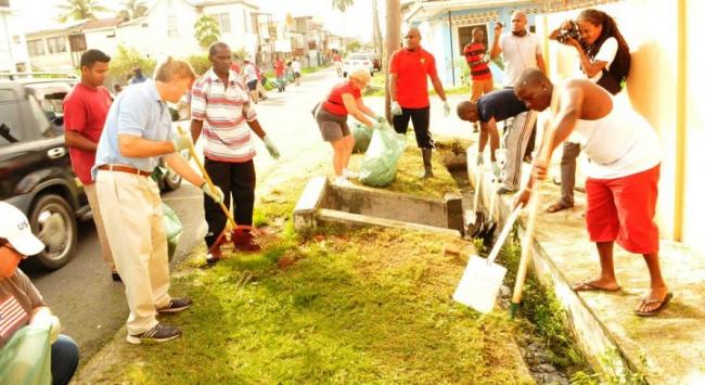 U.S. Ambassador D. Brent Hardt with volunteers cleaning up Georgetown By admin - June 5, 2014 0 134 FacebookTwitterPinterestWhatsAppEmail U.S. Ambassador D. Brent Hardt with volunteers cleaning up Georgetown U.S. Ambassador D. Brent Hardt with volunteers cleaning up Georgetown Related Posts:Guyana Shines: Keep Guyana Beautiful - US Embassy GuyanaWorld Press Freedom Day Reception hosted by United States…New Peace Corps Volunteers Arrive in CountryU.S. Peace Corps Guyana reunion