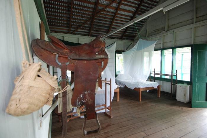 When I stayed there, my room was high up on stilts, and looked as if it had been quietly – and elegantly – flaking away since the 1918. Then there was the main house, which was like the officers’ mess of an Edwardian army (see picture). Around the walls, there were weapons and saddles, and, at sundown, we’d all sit on the balcony, drinking punch. As the ranch no longer had electricity, we were soon in the dark, and beginning to itch. ‘Time for dinner!’ the manager would say, and then we’d all fumble our way downstairs. There, we’d sit in Melvillian splendour, dining on tablecloths adorned with his crest. As we sat, working our way through three great courses of soup and mutton and chocolate mousse, the bats would come wheeling in through the windows, and squeal around our heads.